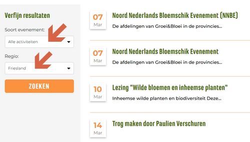 Elke afdeling organiseert het hele jaar door eigen activiteiten, gericht op gezellig en groen samendoen. De vermelde websites bieden informatie over wat er zoal wordt georganiseerd aan lezingen, workshops, excursies en plantenruilmomenten, voor een groot deel toegankelijk voor leden en niet-leden, al dan niet tegen een bepaalde vergoeding.